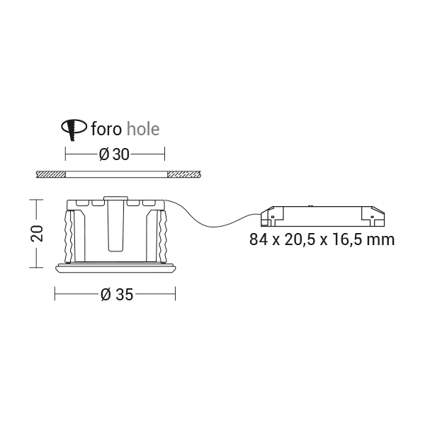 ROSSINI ILLUMINAZIONE - DOWNLIGHT BIANCO LED 3W 36° IP65/20 3000K CRI90