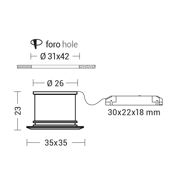 Faretto LED ad incasso tondo o quadrato per cartongesso e muratura, installabile anche in esterno grazie al grado di protezione IP65. Struttura in metallo e diffusore in vetro satinato. In virtù del ridotto spessore è consigliato per spazi ristretti. Disponibile in tre finiture (bianco, cromo e nickel opaco) e due temperature colore (3000K e 4000K). Corredato di alimentatore LED da installare in remoto. Cassaforma per installazione in muratura per versione grande da ordinare come accessorio. Disponibili giunti certificati IP68 per la realizzazione delle connessioni elettriche, sicure, durevoli e con barriera anticondensa.