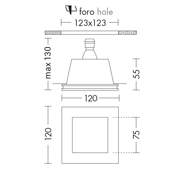 ROSSINI ILLUMINAZIONE - DOWNLIGHT QUADRATO IN GESSO RASATO BIANCO CON VETRO GU10 IP20 9833
