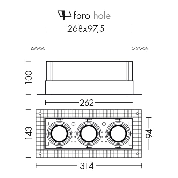 ROSSINI ILLUMINAZIONE - DOWNLIGHT TRIPLO QUADRATO RASATO CARDANICO BIANCO GU10 IP20