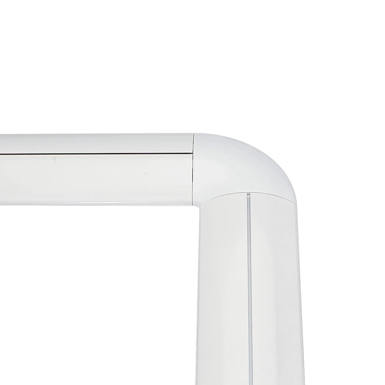 Sistema lineare LED o con attacco G13 solo per tubi LED a luce diretta, per installazione a soffitto (con kit attacco a plafone), a sospensione (con kit sospensione e rosone) o a sistema in fila continua (con giunto lineare e angolare, fino a max 1500W). Struttura in alluminio estruso verniciato con polveri epossidiche in tre finiture (bianco e nero). Disponibile in diverse misure e relative potenze, versione LED in due temperature colore (3000K e 4000K), con alimentatore a bordo. Apparecchio da completare con kit testate terminali e schermi da ordinare separatamente.