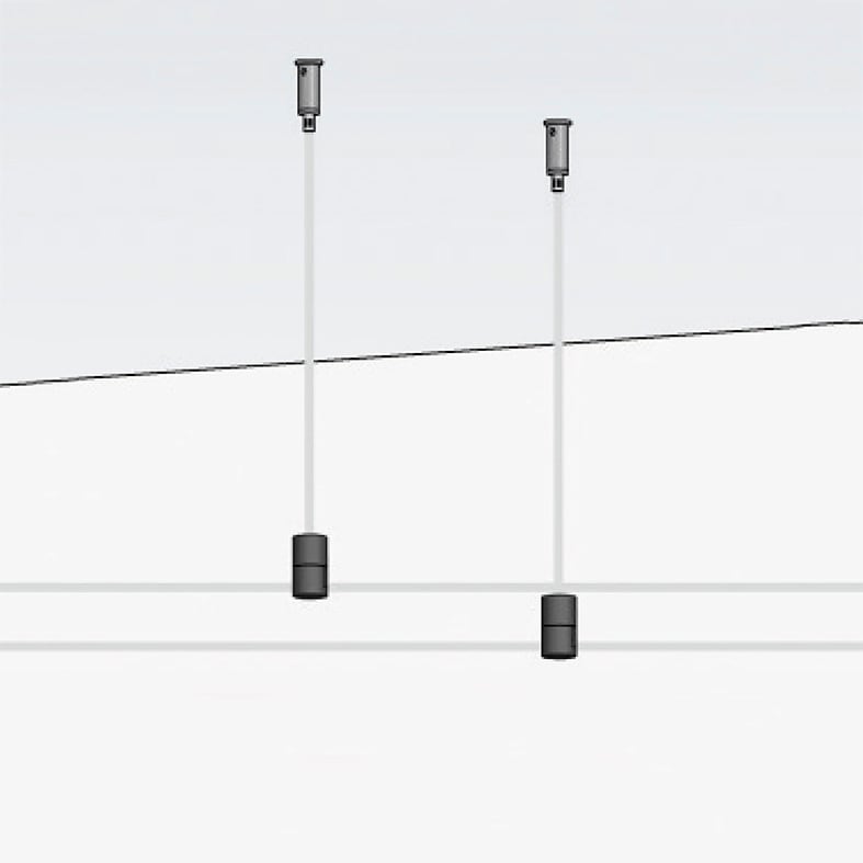 Sistema a tesata con coppia di cavi con interasse 160mm: permette di installare apparecchi con fonte luminosa con LED integrato o con attacco tradizionale (GU10, R7s, E27 che consentono di montare lampadina LED). Corpi illuminanti da posizionare secondo le esigenze di installazione in estruso di alluminio (verniciato bianco opaco o grigio opaco) e diffusore in policarbonato. Disponibili in versione luce diffusa, monoemissione o biemissione o a spot con corpo illuminante orientabile su due assi. LED disponibile in due gradazioni (3000K e 4000K).