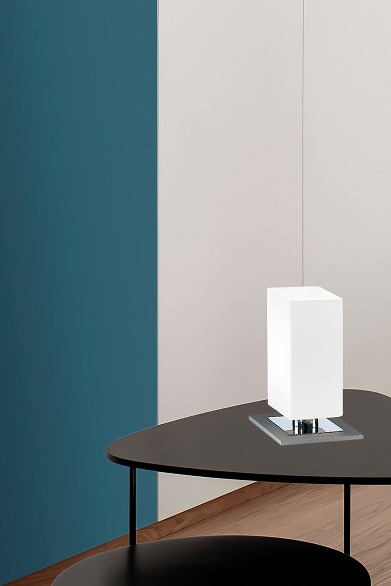 ROSSINI ILLUMINAZIONE - LAMPADA DA TAVOLO CROMO/VETRO BIANCO SATINATO E27 IP20