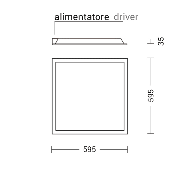 Panel LED quadrato (600x600mm) o rettangolare (300x1200mm) con cornice in alluminio verniciato bianco e diffusore in polistirene con schermo microprismato (per la versione UGR<19). Cornice in plastica per la versione STANDARD. Apparecchio ad alta efficenza luminosa, flicker free. Proposto in due gradazioni colore (3000K e 4000K), con UGR<19 (per installazione in ambienti con videoterminali), nella versione con CRI>90 (per uffici pubblici e per il settore retail) e nella versione on/off, 0-10V push dimm e DALI con alimentatore LED incluso da installare in remoto. Installabile ad incasso in controsoffitti a pannelli (modulare 600x600mm) con struttura a vista e, con gli appositi accessori da ordinare separatamente, a sospensione, a plafone, ad incasso in cartongesso (in battuta o in appoggio) (tranne versione STANDARD). Disponibile kit di emergenza (3 ore) da ordinare come accessorio.