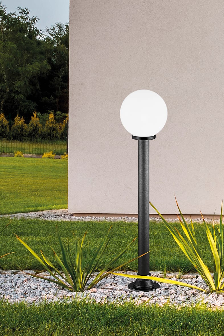 Paletto componibile per esterno, con attacco E27 che consente di montare lampadina LED. Il prodotto si compone scegliendo l'altezza del palo (tre misure disponibili), il diametro del diffusore (da diametro 200mm a 300mm, con apposita griffa) e la sua finitura (disponibile in versione bianco latte, cristallo trasparente, fumè e cristallo con la cupola nera per un abbagliamento controllato). Prodotto adattabile per pali standard con diametro 60mm. Disponibili giunti certificati IP68 per la realizazione delle connessioni elettriche, sicure, durevoli e con barriera anticondensa.