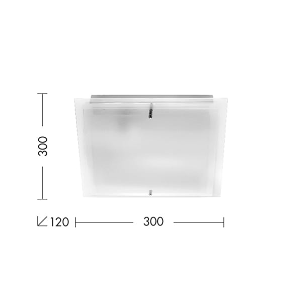 Lampada da soffitto e da parete con struttura in metallo laccato bianco e diffusore in cristallo serigrafato, particolari cromati. Disponibile in diverse misure e relative potenze. Attacco E27 che con sente di montare lampadina LED.