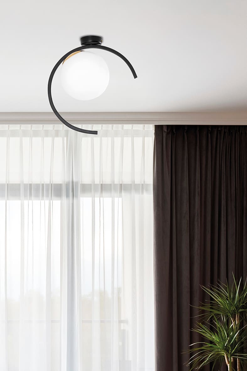 ROSSINI ILLUMINAZIONE - PLAFONIERA NERO-ORO LUCIDO/VETRO SATINATO E27 IP20 TSU002NOL