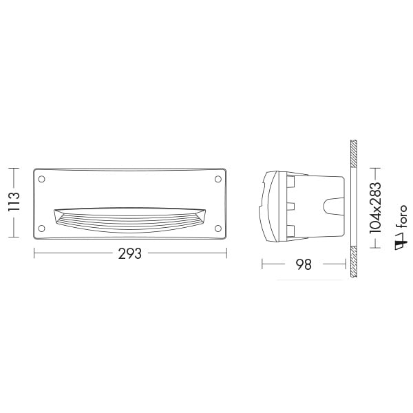Incasso a parete per esterno (IP66) segnapasso, con lampadina LED GX53 inclusa, settabile nella temperatura colore (3000K - 4000K - 6500K). Realizzato in policarbonato antiurto stabilizzato ai raggi UV, inattaccabile da ruggine e corrosione. Diffusore opale in metacrilato con guarnizione in gomma siliconica (IP66). Disponibile in due dimensioni con relative potenze e due finiture (grigio e nero). Disponibili giunti certificati IP68 per la realizzazione delle connessioni elettriche, sicure, durevoli e con barriera anticondensa.