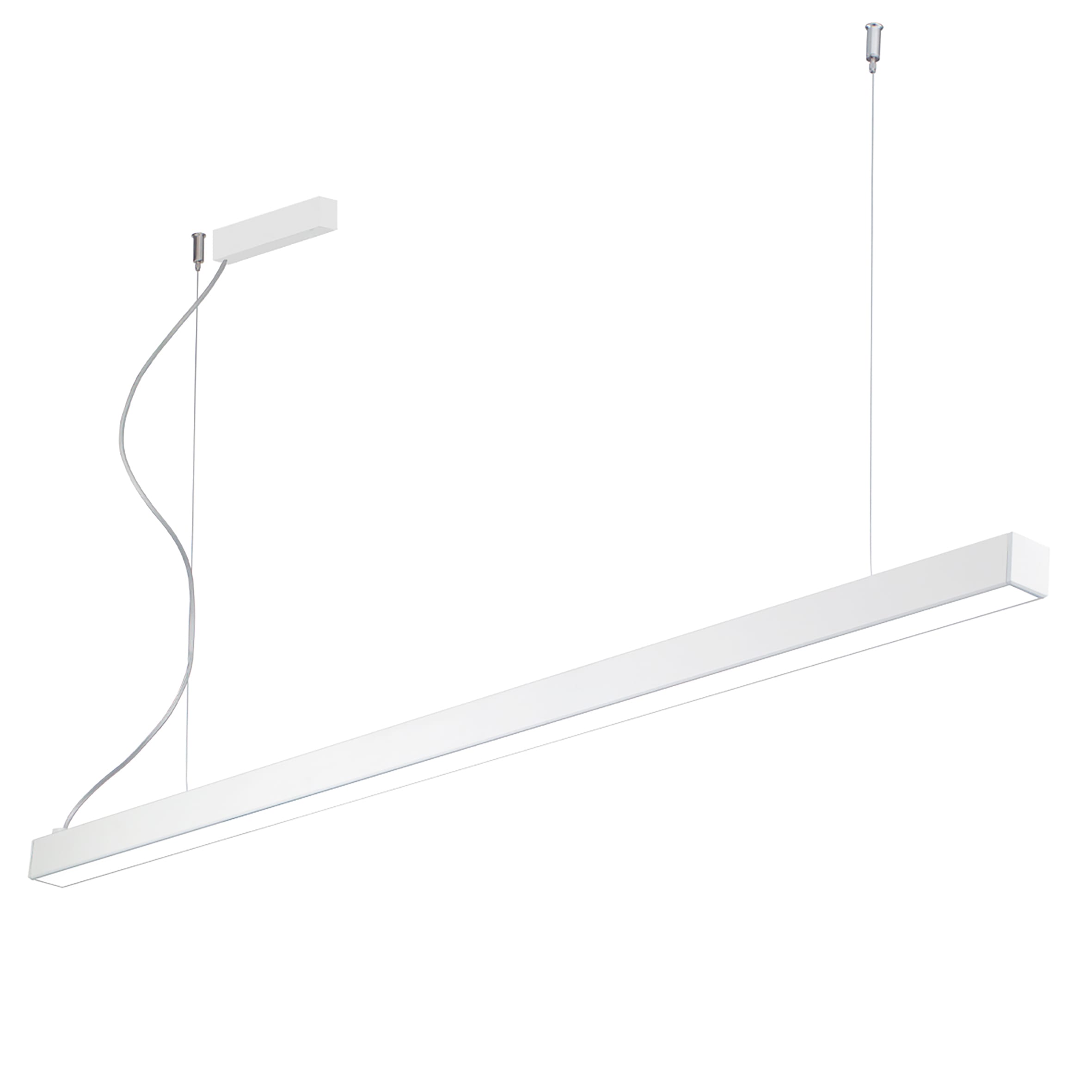 Sistema lineare LED monoemissione o biemissione, con alimentatore in remoto o a bordo, per installazione a soffitto (con kit attacco a plafone), a sospensione (con kit sospensione e rosone), o a sistema in fila continua (con giunto lineare e angolare, fino a max 1500W). Altamente versatile grazie alle molteplici combinazioni possibili date dai differenti moduli, il binario trifase, l'ottica opale o antiriflesso per UGR<19 che lo rendono particolarmente adatto ad installazione in ambienti con videoterminali. Struttura in alluminio estruso dalla forma squadrata ed essenziale, disponibile in versione mono o doppia, verniciata con polveri epossidiche in tre finiture (bianco, nero e grigio). Disponibile in diverse misure e relative potenze, in due temperature colore (3000K e 4000K) e, in alcuni versioni, con sistema DALI su richiesta. Apparecchio da completare con kit testate terminali, schermi e accessori da ordinare separatamente.