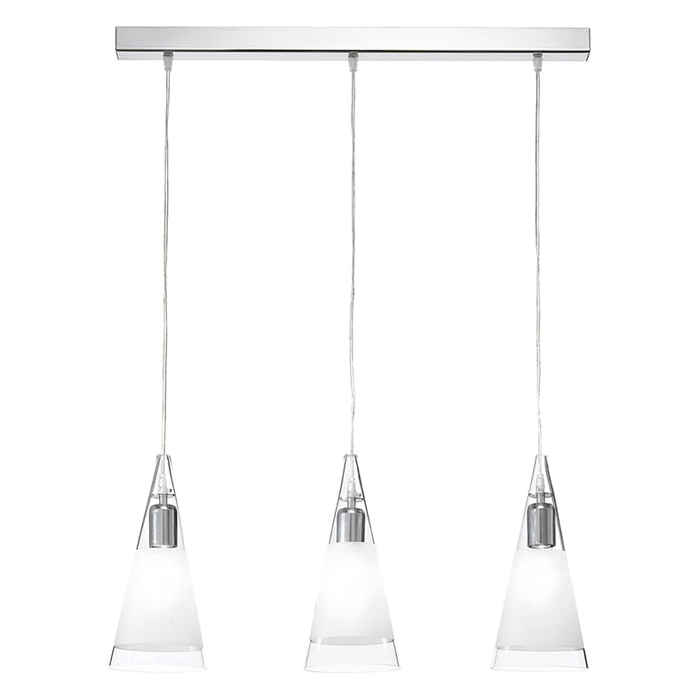 ROSSINI ILLUMINAZIONE - SOSPENSIONE 3 ELEMENTI LINEARE CROMO/VETRO BIANCO SATINATO E27 IP20