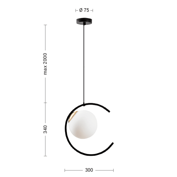 ROSSINI ILLUMINAZIONE - SOSPENSIONE NERO-ORO LUCIDO/VETRO SATINA