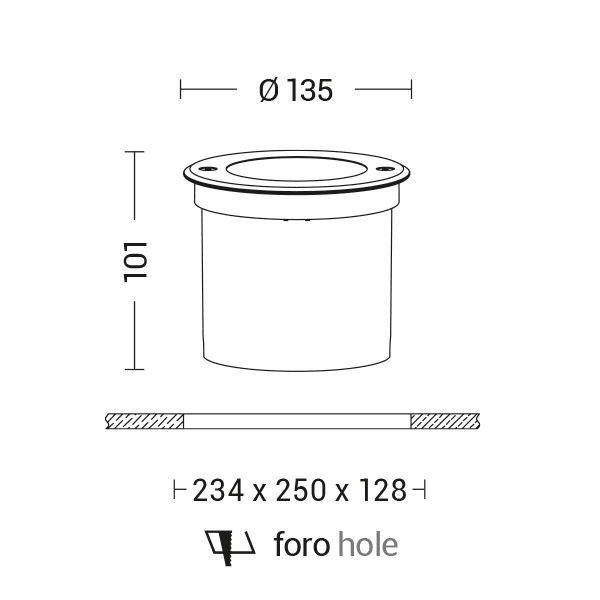 Faretto LED ad incasso tondo per esterno da terra. Corpo in alluminio con vetro temperato, cassaforma in dotazione. Ghiera e viti di fissaggio in acciaio INOX AISI304, guarnizioni in silicone per garantire un alto livello di protezione (IP65). Alimentatore LED integrato. Disponibile in due temperature colore (3000K e 4000K). Disponibili giunti certificati IP68 per la realizzazione delle connessioni elettriche, sicure, durevoli e con barriera anticondensa.
