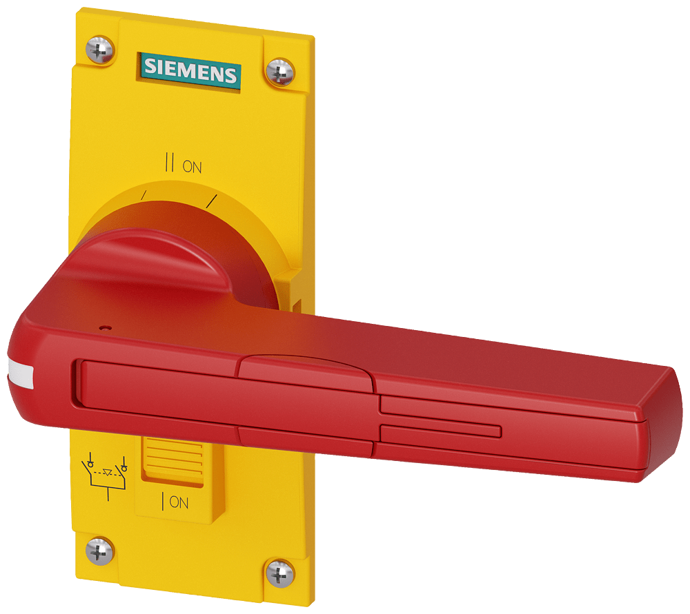 accessori per 3KC0 grand. costr. 4 comando diretto giallo/rosso con copertura per 3KC0 grand. costr. 4 a 3 e 4 poli contiene 1 pezzo Accessori per commutatore di rete SENTRON 3KC9 Sicurezza integrale per utenti e sistemi.