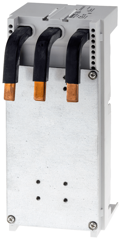 adattatore apparecchio, a 3 poli, 125 A, senza viti di fissaggio per NGG/HGG/LGG/3VA51 interasse sbarre collettrici 60mm 200x 90mm i morsetti devono essere ordinati separatamente per interruttore automatico GG: 3TC1GG20, per 3VA51: 3VA9133-0JA11 o 3VA9133-0JB11 Sistema di sbarre collettrici 8US per il montaggio di apparecchi di protezione come sezionatori sottocarico a fusibili e interruttori automatici - sicuro, salvaspazio, con una struttura chiara. L'impiego dei sistemi di sbarre collettrici 8US di Siemens offre molteplici possibilità per l'installazione di apparecchi di collegamento, manovra e installazione adattabili a sbarre. La forma costruttiva modulare salvaspazio e il montaggio rapido con contattazione assicurano un equipaggiamento elettrotecnico economico nella costruzione degli odierni quadri di distribuzione. Il montaggio avviene su montanti, l'interasse delle sbarre ammonta a 60 mm. I sistemi di sbarre collettrici 8US di Siemens si contraddistinguono soprattutto per le seguenti caratteristiche: 1. Fissaggio meccanico e contattazione elettrica in una sola operazione. 2. Omologazione internazionale e quindi possibilità di impiego in tutto il mondo nel settore della costruzione di macchine e impianti. 3. Semplice intercambiabilità di singoli apparecchi ointere combinazioni. 4. Risparmio di montaggio e riduzione dei costi grazie a partenze motore già preassemblate. 5. Elevata sicurezza di funzionamento grazie alla copertura di protezione a prova di dito degli adattatori e dei supporti per apparecchi. 6. Ampia gamma di sbarre collettrici impiegabili per un semplice adattamento a correnti fino a 1.600 A.