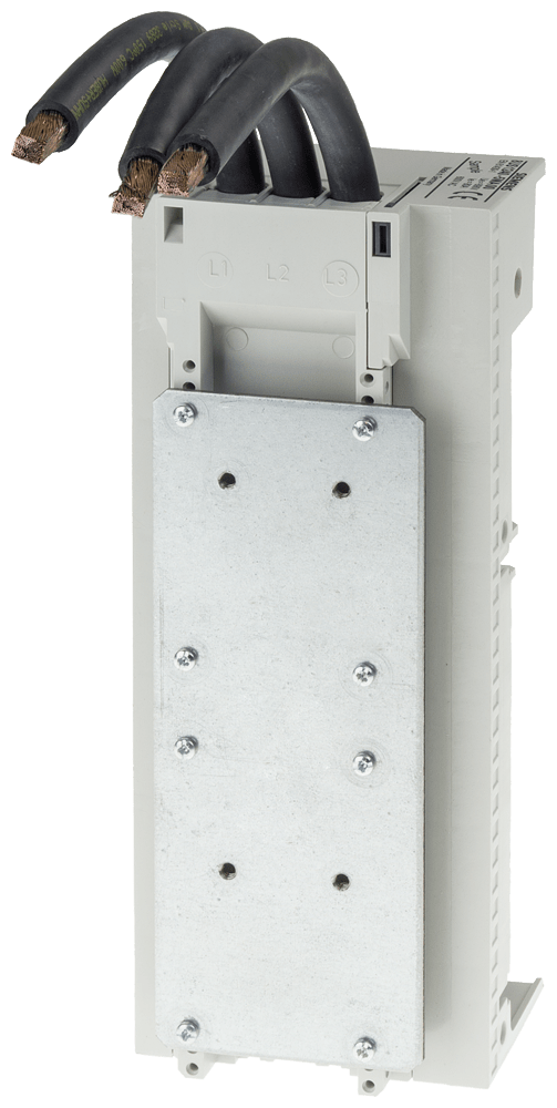 adattatore apparecchio, a 3 poli, 80A, per NGG, HGG, LGG, senza viti di fissaggio interasse sbarre collettrici 60mm 200 x 81 mm per interruttore automatico GG: i morsetti 3TC1GG20 devono essere ordinati separatamente Sistema di sbarre collettrici 8US per il montaggio di apparecchi di protezione come sezionatori sottocarico a fusibili e interruttori automatici - sicuro, salvaspazio, con una struttura chiara. L'impiego dei sistemi di sbarre collettrici 8US di Siemens offre molteplici possibilità per l'installazione di apparecchi di collegamento, manovra e installazione adattabili a sbarre. La forma costruttiva modulare salvaspazio e il montaggio rapido con contattazione assicurano un equipaggiamento elettrotecnico economico nella costruzione degli odierni quadri di distribuzione. Il montaggio avviene su montanti, l'interasse delle sbarre ammonta a 60 mm. I sistemi di sbarre collettrici 8US di Siemens si contraddistinguono soprattutto per le seguenti caratteristiche: 1. Fissaggio meccanico e contattazione elettrica in una sola operazione. 2. Omologazione internazionale e quindi possibilità di impiego in tutto il mondo nel settore della costruzione di macchine e impianti. 3. Semplice intercambiabilità di singoli apparecchi ointere combinazioni. 4. Risparmio di montaggio e riduzione dei costi grazie a partenze motore già preassemblate. 5. Elevata sicurezza di funzionamento grazie alla copertura di protezione a prova di dito degli adattatori e dei supporti per apparecchi. 6. Ampia gamma di sbarre collettrici impiegabili per un semplice adattamento a correnti fino a 1.600 A.