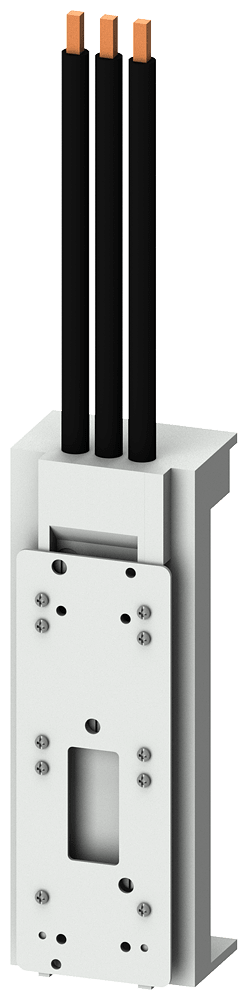 adattatore apparecchio per interruttori automatici SIRIUS di grand. costr S3, IEC 100A/690V, UL 100A/600V, AWG4, 25 mm2, lunghezza 200mm, larghezza 72mm uscita cavo in alto cavo max. 150° saldato 153mm, per spessore sbarre collettrici 5mm e 10 mm, profilato TT Sistema di sbarre collettrici 8US per il montaggio di apparecchi di protezione come sezionatori sottocarico a fusibili e interruttori automatici - sicuro, salvaspazio, con una struttura chiara. L'impiego dei sistemi di sbarre collettrici 8US di Siemens offre molteplici possibilità per l'installazione di apparecchi di collegamento, manovra e installazione adattabili a sbarre. La forma costruttiva modulare salvaspazio e il montaggio rapido con contattazione assicurano un equipaggiamento elettrotecnico economico nella costruzione degli odierni quadri di distribuzione. Il montaggio avviene su montanti, l'interasse delle sbarre ammonta a 60 mm. I sistemi di sbarre collettrici 8US di Siemens si contraddistinguono soprattutto per le seguenti caratteristiche: 1. Fissaggio meccanico e contattazione elettrica in una sola operazione. 2. Omologazione internazionale e quindi possibilità di impiego in tutto il mondo nel settore della costruzione di macchine e impianti. 3. Semplice intercambiabilità di singoli apparecchi ointere combinazioni. 4. Risparmio di montaggio e riduzione dei costi grazie a partenze motore già preassemblate. 5. Elevata sicurezza di funzionamento grazie alla copertura di protezione a prova di dito degli adattatori e dei supporti per apparecchi. 6. Ampia gamma di sbarre collettrici impiegabili per un semplice adattamento a correnti fino a 1.600 A.
