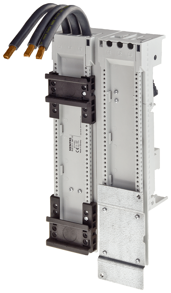 adattatore apparecchio S2, 80A, WENDEAB AWG4 25 mm2 150 mm 150° lunghezza 260 mm, larghezza 118 mm Sistema di sbarre collettrici 8US per il montaggio di apparecchi di protezione come sezionatori sottocarico a fusibili e interruttori automatici - sicuro, salvaspazio, con una struttura chiara. L'impiego dei sistemi di sbarre collettrici 8US di Siemens offre molteplici possibilità per l'installazione di apparecchi di collegamento, manovra e installazione adattabili a sbarre. La forma costruttiva modulare salvaspazio e il montaggio rapido con contattazione assicurano un equipaggiamento elettrotecnico economico nella costruzione degli odierni quadri di distribuzione. Il montaggio avviene su montanti, l'interasse delle sbarre ammonta a 60 mm. I sistemi di sbarre collettrici 8US di Siemens si contraddistinguono soprattutto per le seguenti caratteristiche: 1. Fissaggio meccanico e contattazione elettrica in una sola operazione. 2. Omologazione internazionale e quindi possibilità di impiego in tutto il mondo nel settore della costruzione di macchine e impianti. 3. Semplice intercambiabilità di singoli apparecchi ointere combinazioni. 4. Risparmio di montaggio e riduzione dei costi grazie a partenze motore già preassemblate. 5. Elevata sicurezza di funzionamento grazie alla copertura di protezione a prova di dito degli adattatori e dei supporti per apparecchi. 6. Ampia gamma di sbarre collettrici impiegabili per un semplice adattamento a correnti fino a 1.600 A.