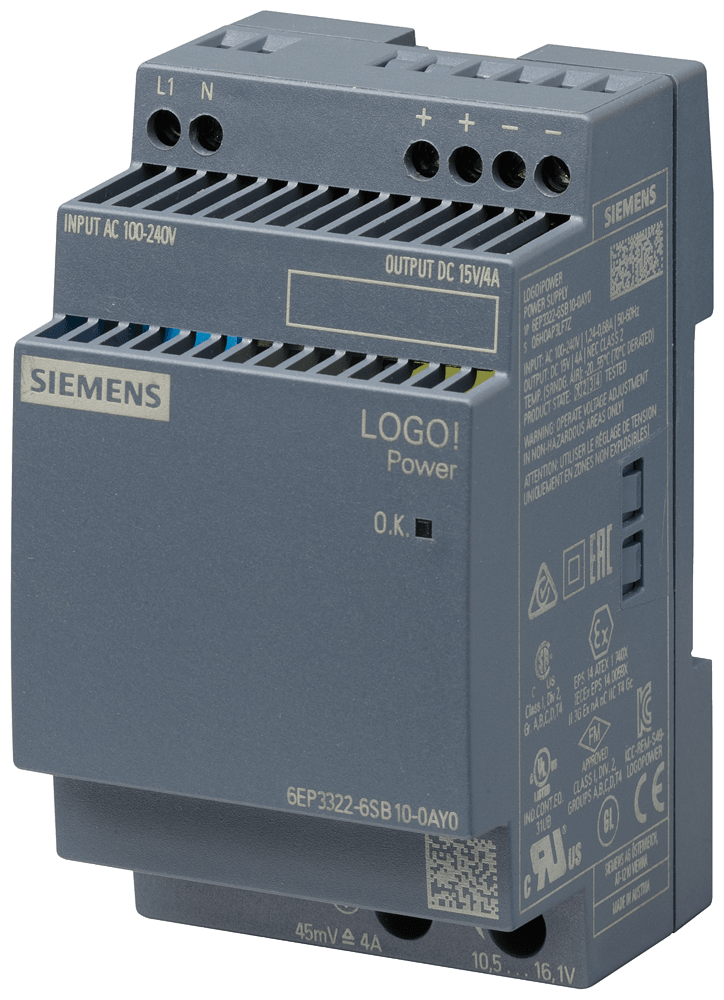 SIEMENS - Alimentatore LOGO!Power, monofase DC 15 V/4 A 6EP33226SB100AY0
