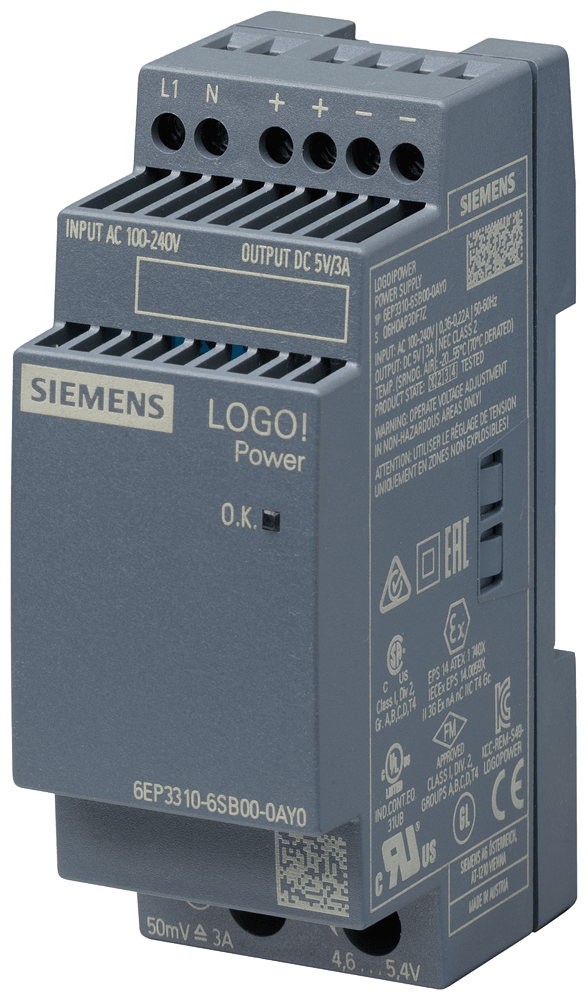 SIEMENS - Alimentatore LOGO!Power, monofase DC 5 V/3 A 6EP33106SB000AY0