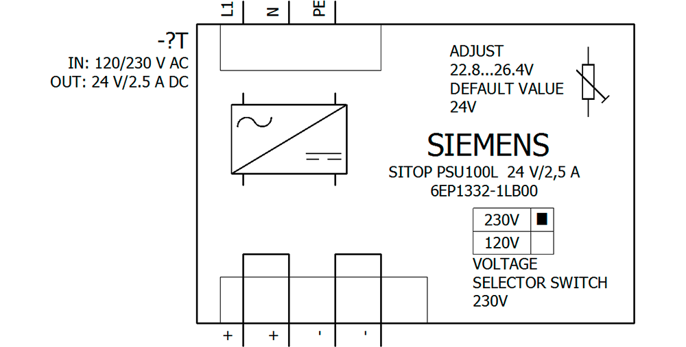 SIEMENS - Alimentatore SITOP PSU100L, monofase DC 24 V/2,5 A 6EP13321LB00