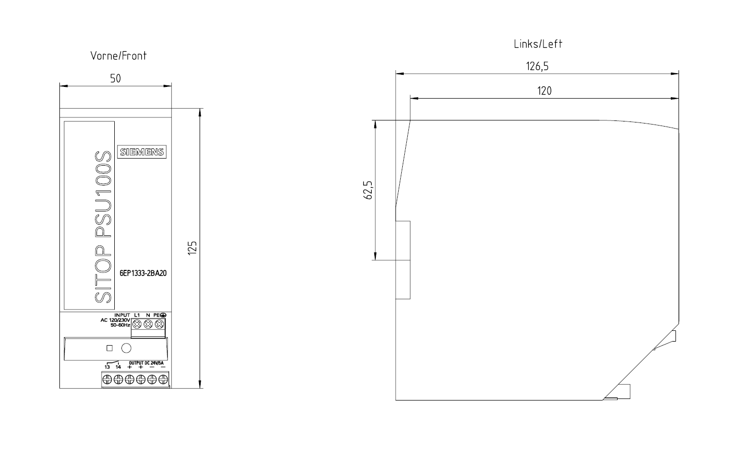 SIEMENS - Alimentatore SITOP PSU100S, monofase DC 24 V/5 A 6EP13332BA20