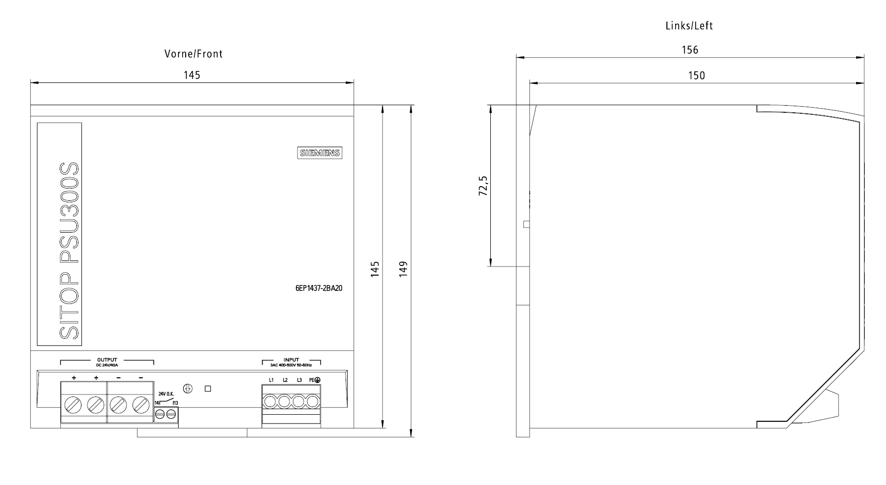 SIEMENS - Alimentatore SITOP PSU300S, trifase DC 24 V/40 A 6EP14372BA20