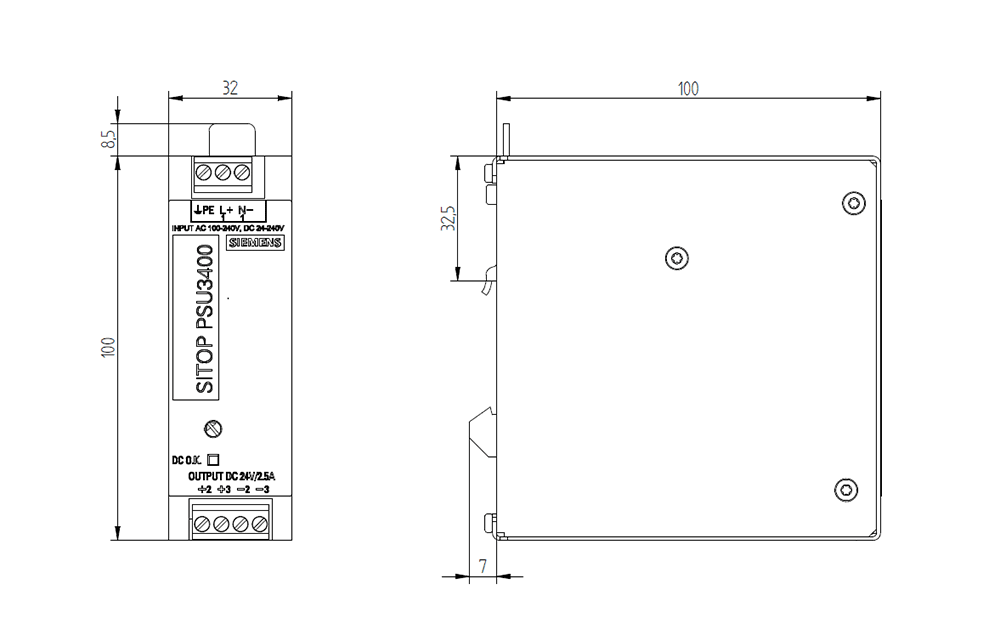 SIEMENS - Alimentatore SITOP PSU3400 Uni, AC 88-264 V, DC 18-264 V/DC 24 V/2,5 A 6EP33320TA000AY0