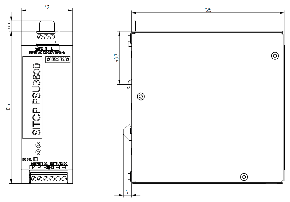 SIEMENS - Alimentatore SITOP PSU3600 dual, monofase DC 2x15 V/3,5 A 6EP33230SA000BY0