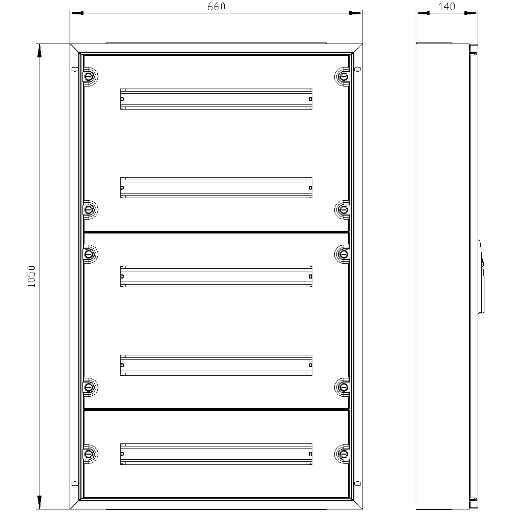 ALPHA 125 Universal, quadro di distribuzione da parete, esecuzione sporgente, con scomparto di distribuzione, IP43, classe di protezione 1 A=1000mm, La=600 mm, T=140mm, RAL 7035 Quadri di distribuzione ALPHA UNIVERSAL - un sistema completo di quadri centralino e quadri di distribuzione a pavimento per l'installazione di apparecchi fino a 800 A. I sistemi di quadri di distribuzione ALPHA UNIVERSAL sono testati secondo IEC 61439. Grazie alla struttura modulare e ad una piattaforma comune è possibile integrare i kit di montaggio specifici degli apparecchi in diverse varianti di quadri di distribuzione. Ciò facilita la pianificazione e il montaggio. L'equipaggiamento avviene in modo individuale e specifico per il progetto. Il software di configurazione SIMARIS configuration supporta l'utente dalla pianificazione fino alla documentazione dei quadri di distribuzione dell'energia e dei quadri di distribuzione per l'installazione. I sistemi di quadri di distribuzione ALPHA UNIVERSAL sono fornibili in numerose esecuzioni e in molti colori speciali. Le porte sono a scelta in vetro o in acciaio. ALPHA UNIVERSAL - il concetto di sistema è importante.