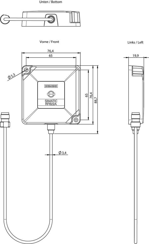 SIEMENS - Antenna RF622A ETSI, lineare, RF600, 865-868 MHz UE, IP67, cavo di 0,3 m 6GT28122EA00