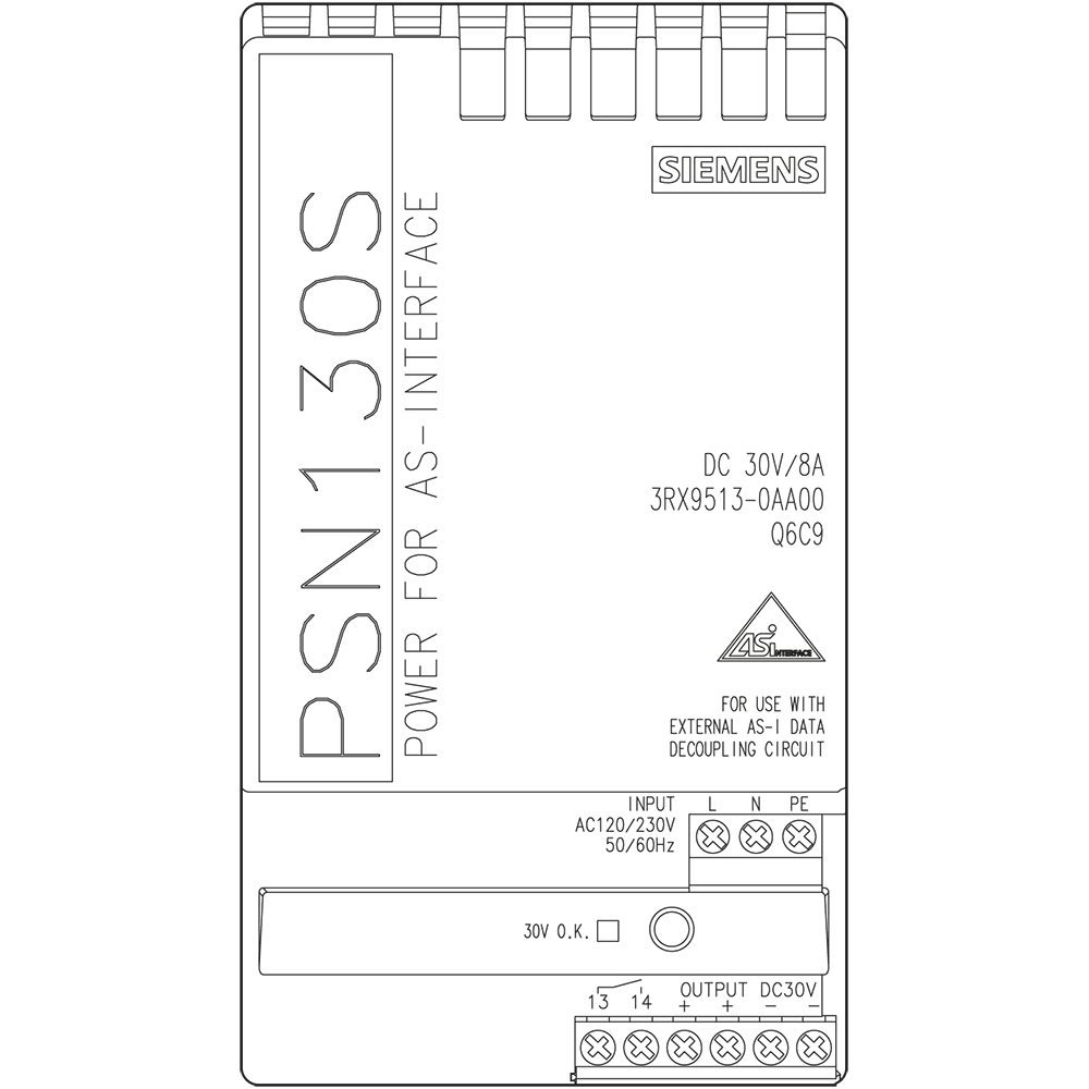 SIEMENS - AS-i PS30N 8 A AC 120 V/230 V, IP20 3RX95130AA00