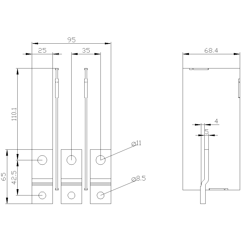 SIEMENS - Attacchi a sbarra allungati anteriori, 3 pezzi, accessori per: 3VA2 100/160/250 3VA92630QB00