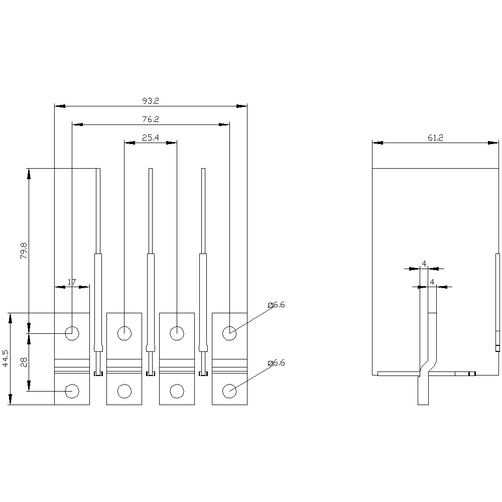 SIEMENS - Attacchi a sbarra allungati anteriori, 4 pezzi, accessori per: 3VA1 100/160 3VA91540QB00