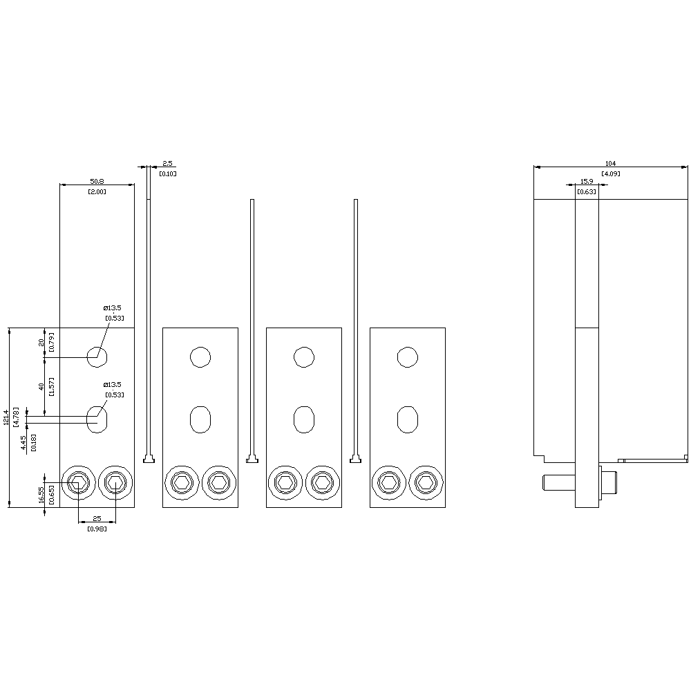 SIEMENS - Attacchi a sbarra allungati anteriori 4 pezzi per 3VA55/65 3VA96740QB00