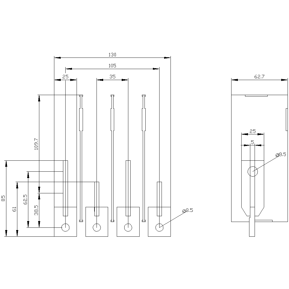 SIEMENS - Attacchi a sbarra allungati verticali, 4 pezzi, accessori per: 3VA1 250 3VA92540QD00