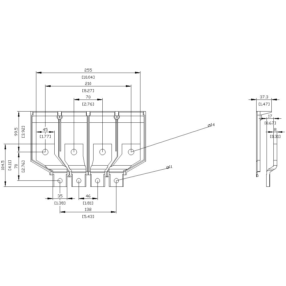 SIEMENS - Attacchi a sbarra divaricati anteriori, 4 pezzi per 3VA5/6 400/600 3VA94740QC00