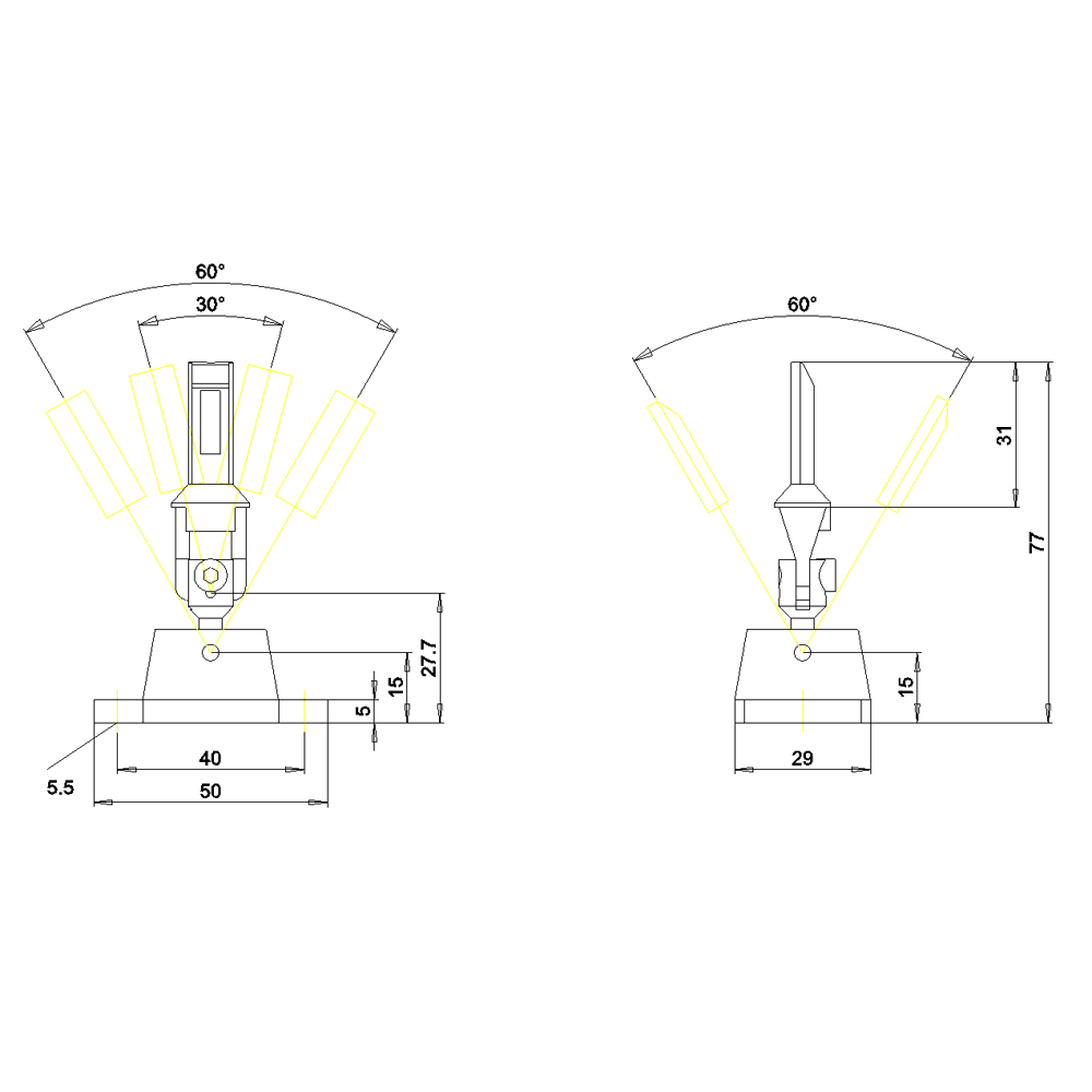 azionatore in acciaio inox, azionatore radiale universale esecuzione 'HEAVY DUTY' verticale e orizzontale impostabile, lunghezza = 77 mm per interruttori di posizione con blocco di ritenuta 3SE5312/3SE5322 e ASi 3SF13 e interruttori di posizione con azionatore separato 3SE51/3SE52 e AS-i con azionatore separato azionatore 3SF11/3SF12. Per condizioni ambientali estreme come meno 40 gradi con elevata protezione contro la corrosione