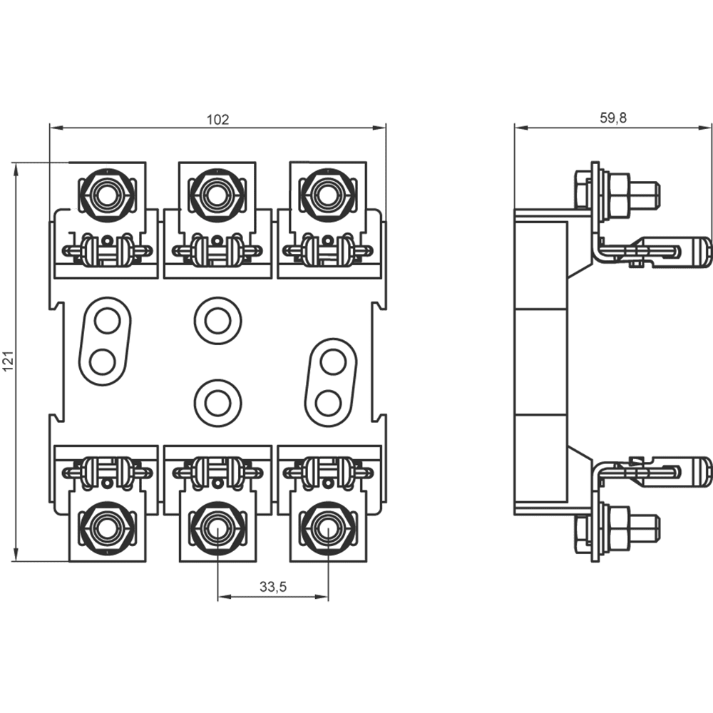 Base di fusibili NH gr. 00, a 3 poli 160A 690V (1000V) attacco piatto, 95 mm2