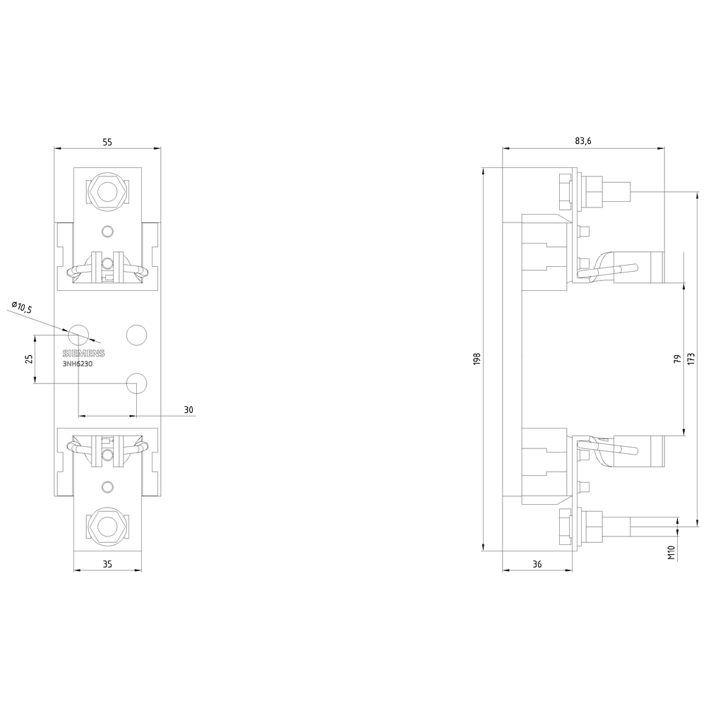 SIEMENS - Base portafusibili NH in ceramica grandezza costruttiva 1 a 1 polo 250 A 690 V (1000 V) 3NH6230