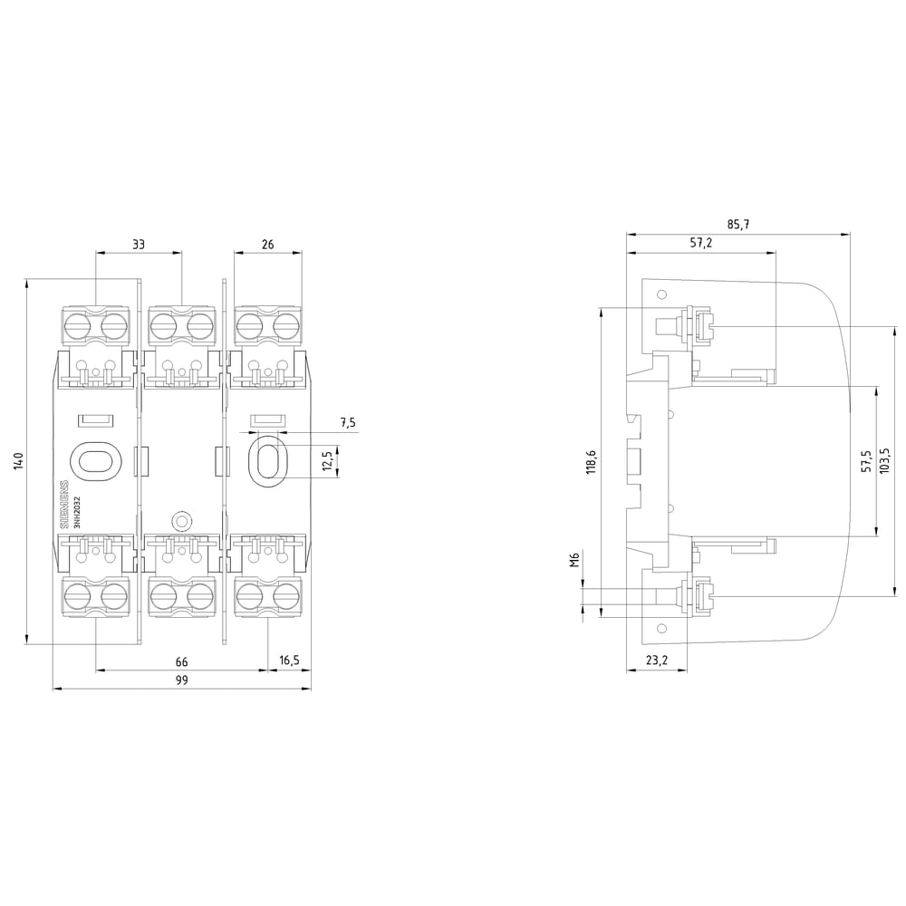 SIEMENS - Base portafusibili NH in plastica grandezza costruttiva 00 3 poli 160 A 690 V connessione a morsetto 3NH2032