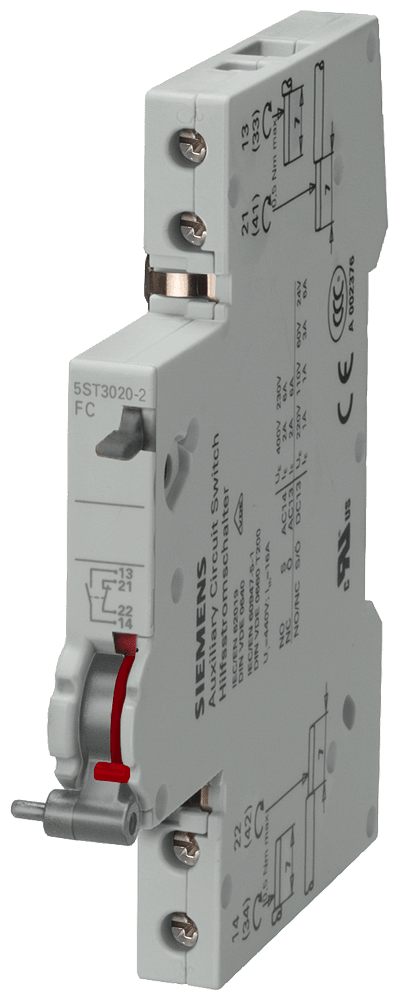 SIEMENS - Blocchetti di contatti di segnalazione errore con tasto di prova e di conferma 1NO+1NC, per interruttore magnetotermico 5SL, 5SY