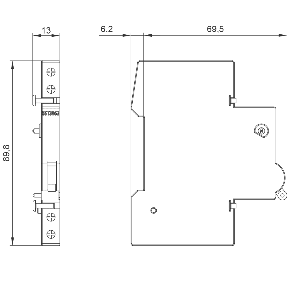 SIEMENS - Blocchetto di contatti ausiliari 1CO + blocchetto di contatti di segnalazione errore 1CO, AC 230/400V/DC 24...220V, 0,5 UM 5ST3062