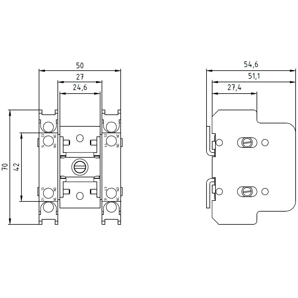 SIEMENS - Blocchetto di contatti ausiliari 2NO+2NC, a sinistra 3TY27812C