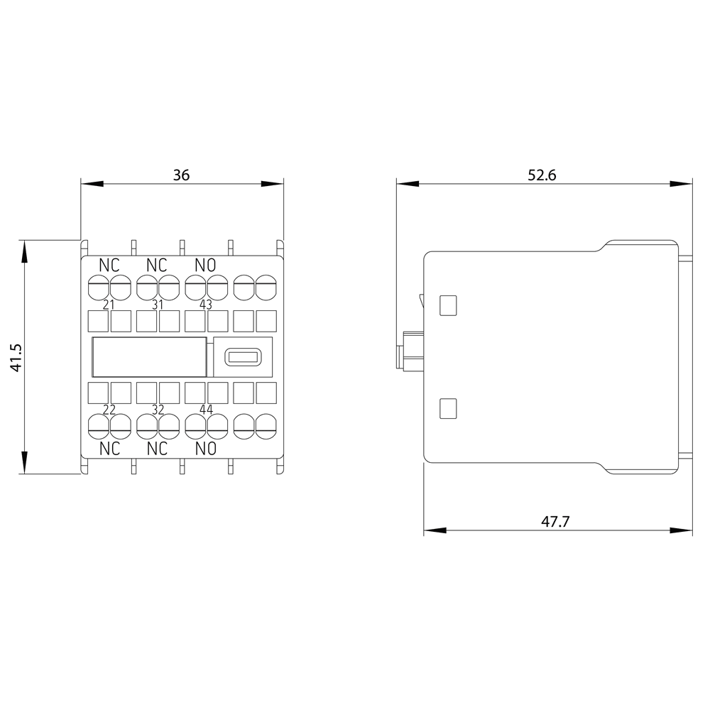 SIEMENS - Blocchetto di contatti ausiliari frontale, 1NO+2NC, via di corrente 1NC, 1NO, 1NO, morsetti a molla