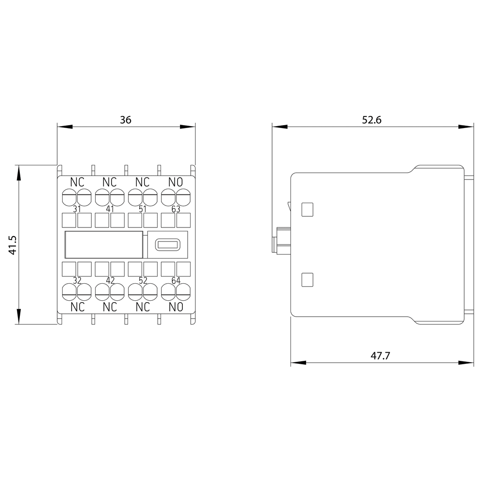 SIEMENS - Blocchetto di contatti ausiliari frontale, 1NO+3NC, via di corrente 1NC, 1NC, 1NC, 1NO, morsetti a molla 3RH29112HA130KT0