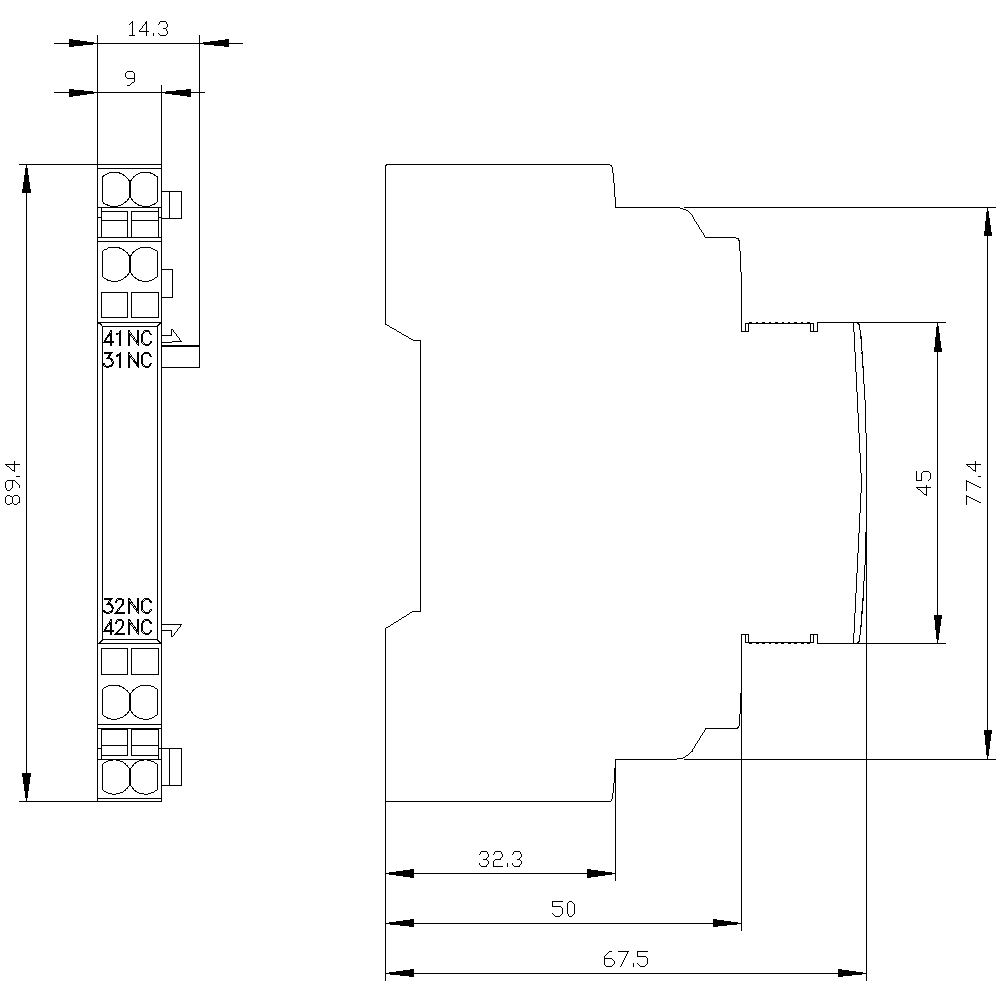 SIEMENS - Blocchetto di contatti ausiliari, montabile lateralmente, 2NC, morsetti a molla, per interruttori automatici, S00/S0 3RV29012C