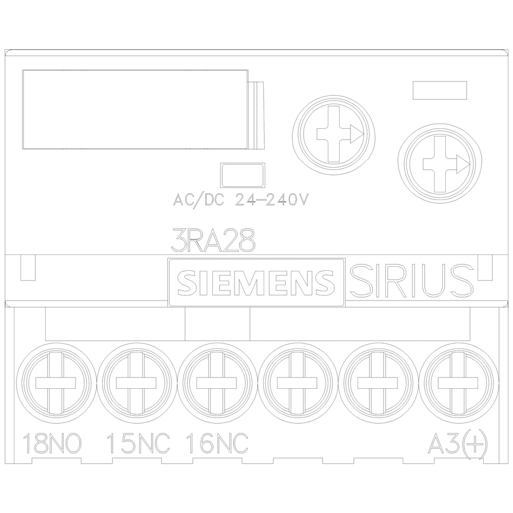 blocchetto di contatti ausiliari ritardato elettronicamente blocchetto di contatti ausiliari, ritardato alla diseccitazione, con segnale di comando, relè: 1 CO, intervallo di tempo 0,05...100 s, AC/DC 24...240 V, 50/60 Hz, varistore per lo smorzamento delle bobine del contattore integrato, morsetti a vite, innestabile a scatto sul lato frontale per contattori 3RT20 e contattori ausiliari 3RH2 Blocchetto di contatti ausiliari ritardato elettronicamente SIRIUS 3RA28 per la commutazione ritardata di circuiti a valle per il montaggio su contattori 3RT2 e contattori ausiliari 3RH2. I blocchetti di contatti ausiliari ritardati elettronicamente offrono un'elevata precisione di regolazione con campi dei tempi commutabili e dispongono di un interblocco elettrico integrato e di un varistore integrato lato fabbrica (circuitazione di protezione). L'inserimento semplice e senza attrezzi consente la realizzazione di funzioni di temporizzazione indipendenti dall'apparecchiatura di comando senza cablaggio addizionale. Si escludono così gli errori di cablaggio e si riducono i costi di collaudo. Grazie al montaggio frontale agli apparecchi si risparmia posto sulla guida DIN. Gli apparecchi sono impiegabili in tutto il mondo grazie ad approvazioni internazionali (ad es. IEC, CCC, UL/CSA). I blocchetti di contatti ausiliari ritardati elettronicamente sono fornibili per contattori 3RT2 e contattori ausiliari 3RH2 nelle grandezze costruttive da S00 a S3. Disponibili con un ampio campo di tensione AC/DC 24-240 V, uscite a scelta 1 NO + 1 NC o 1 CO e con morsetti a vite o a molla. Per i blocchetti di contatti ausiliari ritardati elettronicamente sono disponibili kit di cablaggio e una copertura piombabile. Relè SIRIUS - un programma per ogni evenienza.