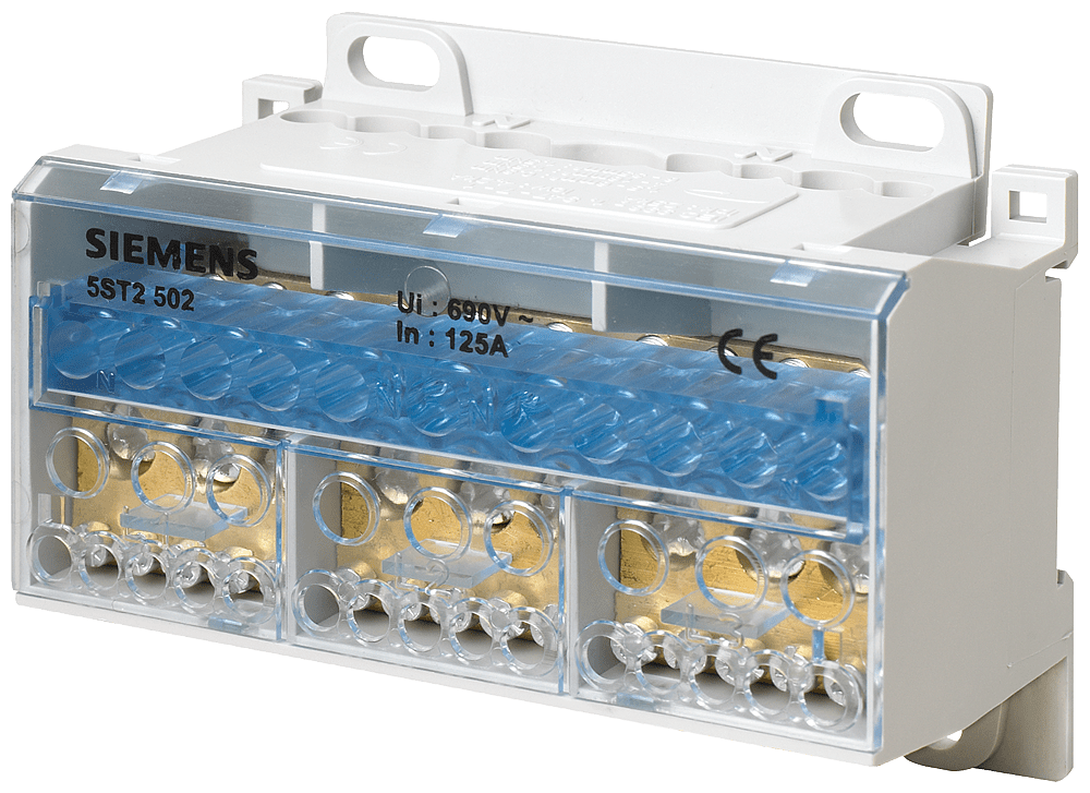 SIEMENS - Blocco distributore a 4 poli, 125A, 690V ingresso 1x 25/35mm² uscita 4x 16+7x 10mm² 5ST2502