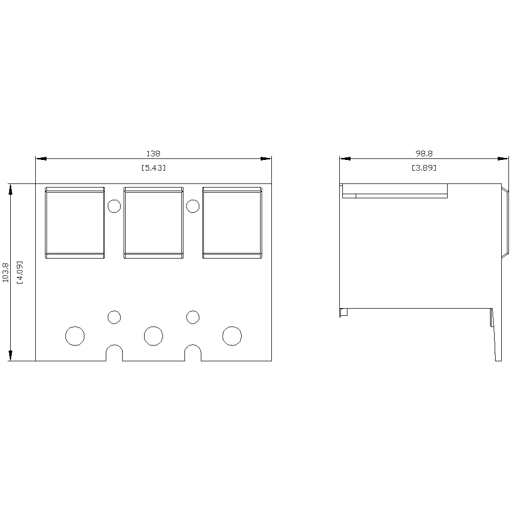 calotta coprimorsetti allungata a 3 poli, 1 pezzo con fori per il controllo della tensione accessori per: 3VA53/54; 3VA63/64 zoccolo in esecuzione rimovibile/estraibile 3VA53/54; 3VA63/64 Interruttori automatici scatolati SENTRON 3VA - un sistema. Per tutte le applicazioni.