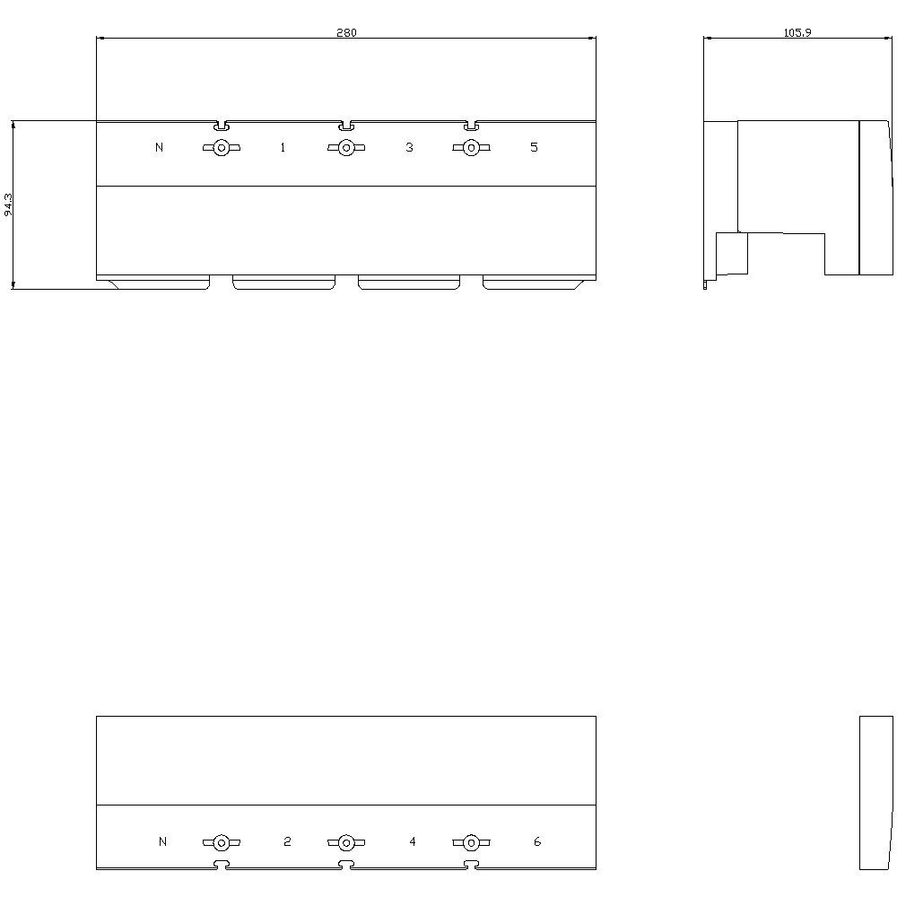 SIEMENS - Calotta coprimorsetti intermedia a 4 poli, 1 pezzo, accessorio per: 3VA15/25 1000 3VA96010WE40